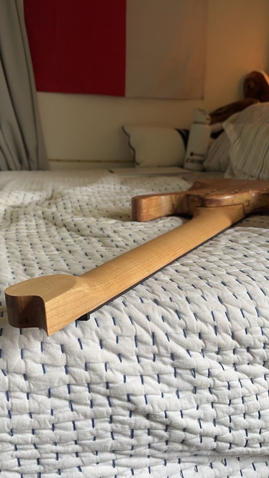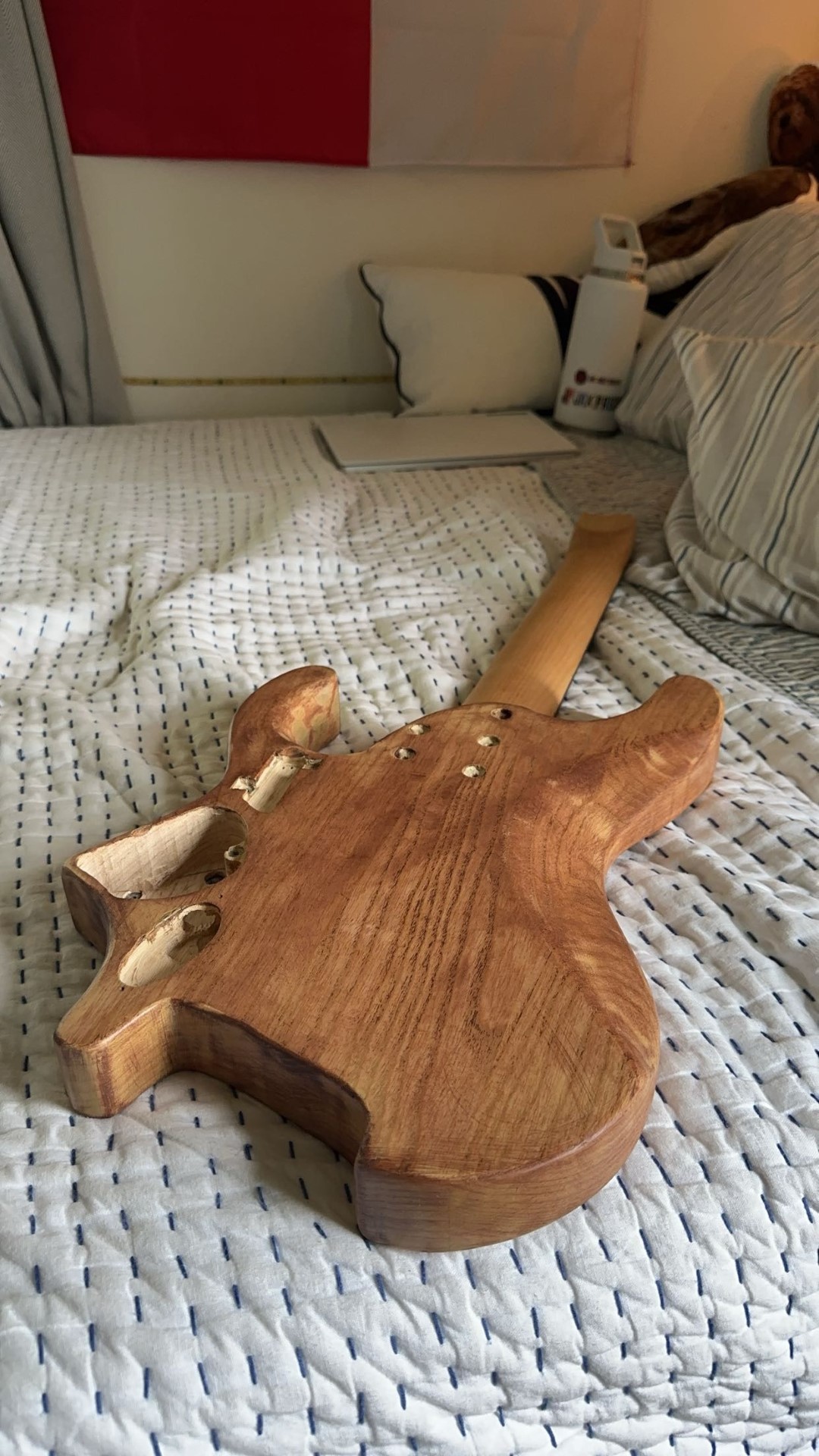 Body: Swamp ash finished with a light cherry stain, tru oil, and wipe on poly