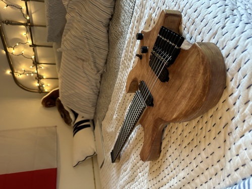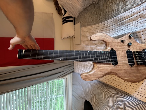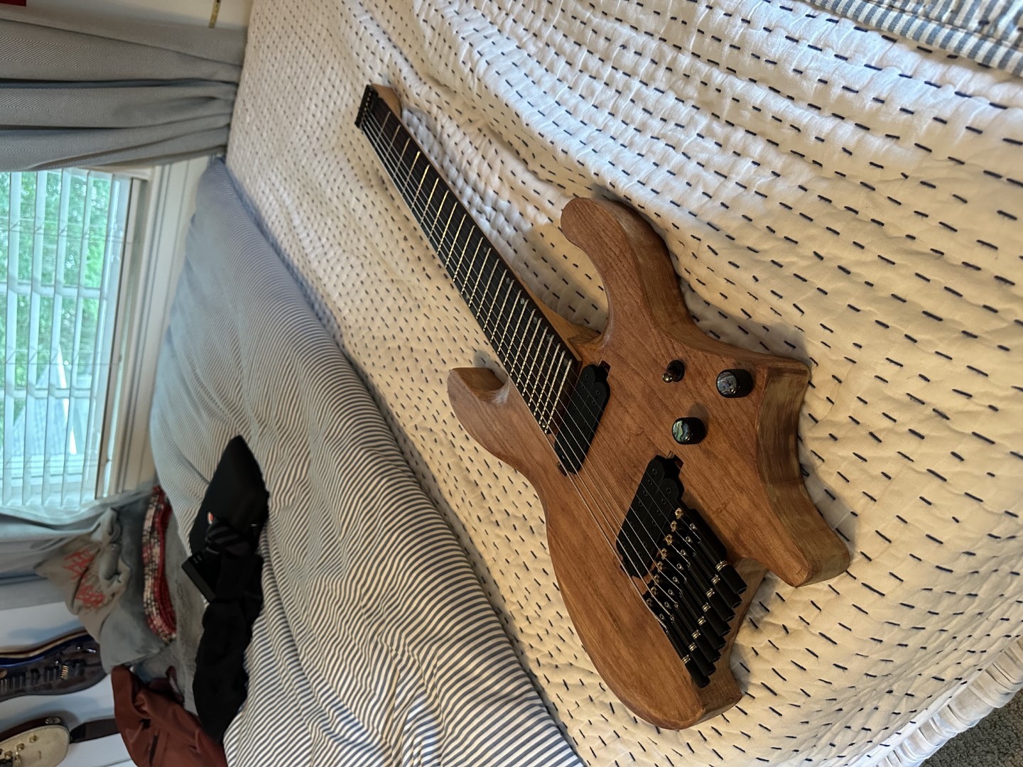 Pickups: Mark Holcomb Alpha and Omega 8 string set (Modified to be multiscale with custom brass backing plates)