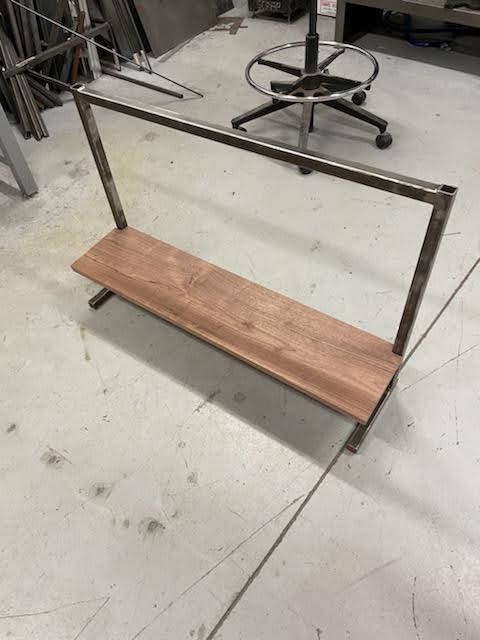 Using a combo of metal and wood this shelfing unit has a metal frame and wooden shelves.Tags: Basic Safety TrainingWood Shop TrainingMetal Shop TrainingMachine Shop TrainingMachine ShopMetal ShopWood ShopBaileigh Belt/Disk SanderDewalt Miter SawMiller Multimatic WelderSawstop Table Sawetp0016metalwoodwoodshop