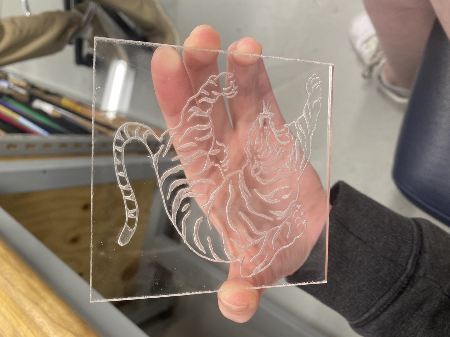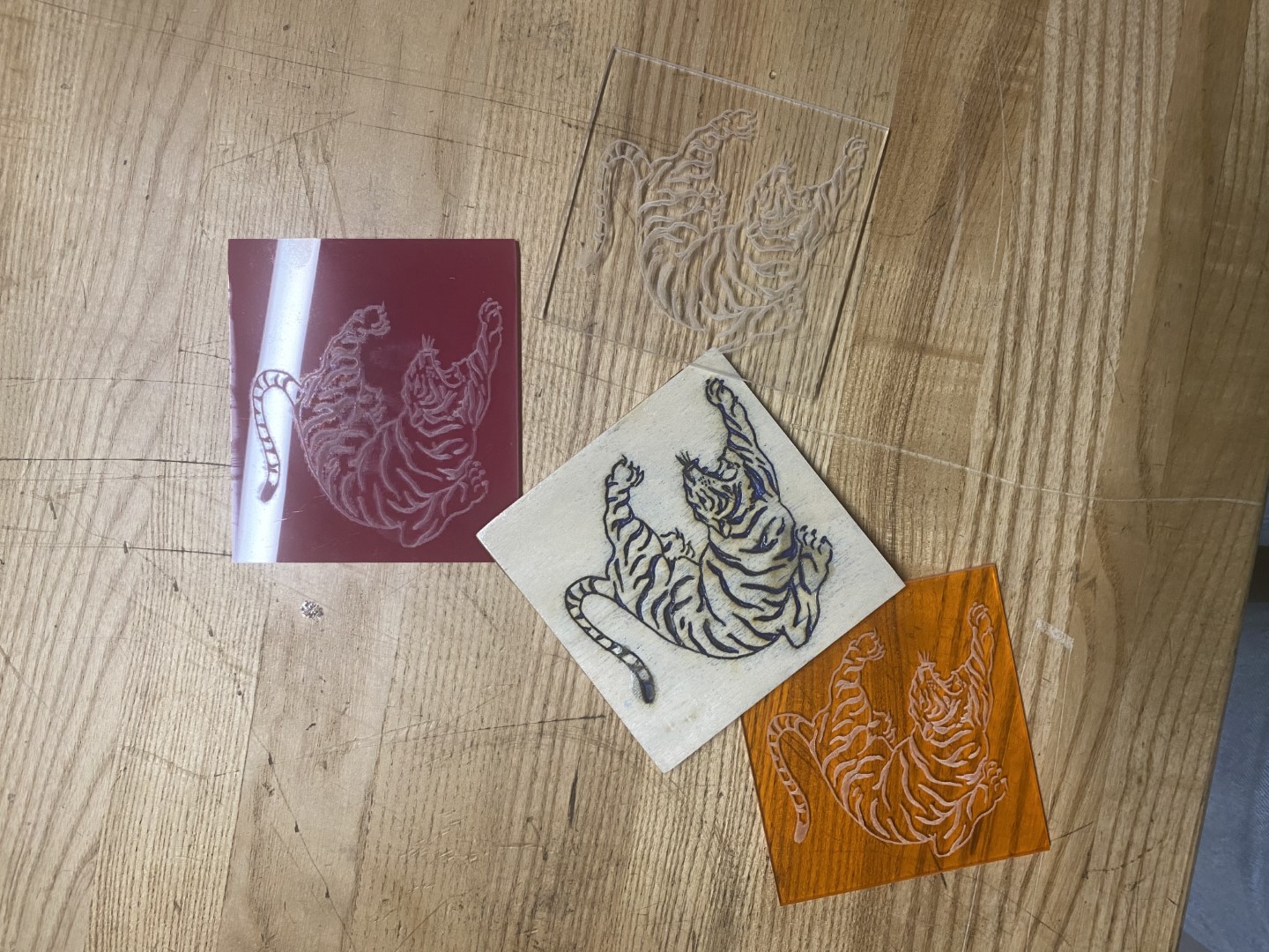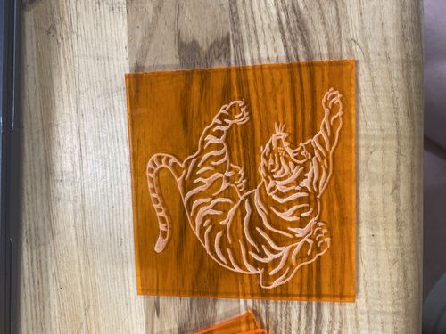 Acrylic and Wooden coasters with tigers engraved onto them by the laser cutter and made from the scraps found in the prototype shop. Used craft world to add blue acrylic paint onto the wooden coasters and sealed it with polyeurethene found in the wood shop.Tags: Basic Safety TrainingCraft World TrainingPrototype ShopLaser Cutter TrainingWood Shop TrainingHand ToolsHanging Tool CartsTrotec Laser CutteracryliccoasterslasercutterlaserengraverlaserengravingwoodCraft WorldPrototype ShopWood ShopWork Shop