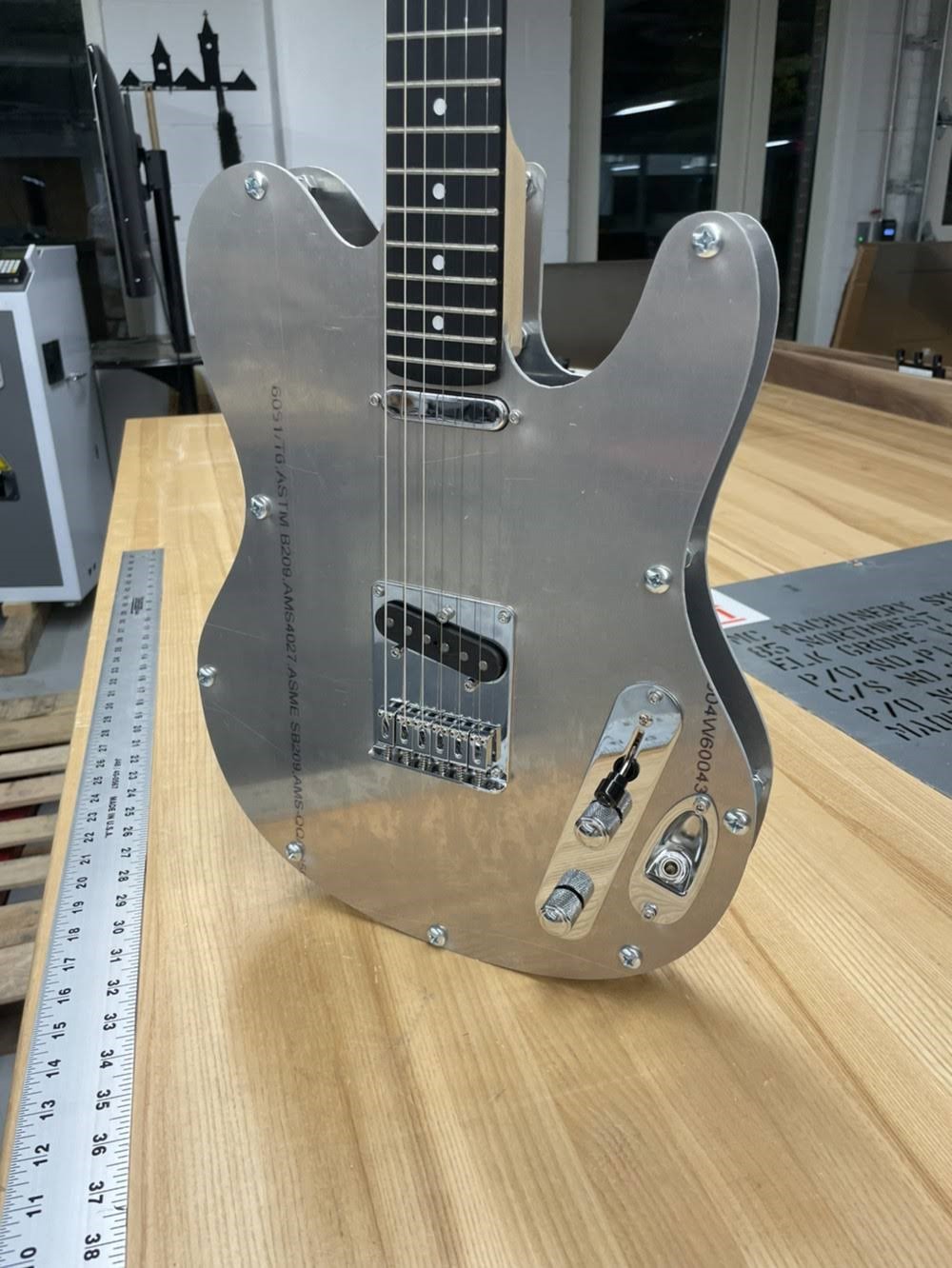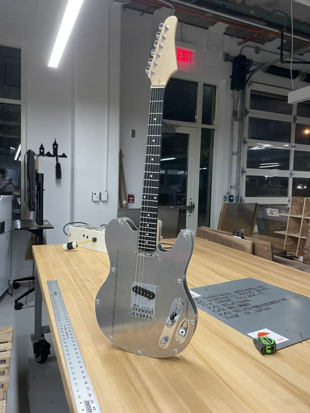 Putting the metal in heavy metal. The guitar body was first prototyped using the laser cutters. Then the final body was cut out in the machine shop using the water jet. Finally, the electronics shop equipment was used to make the inside of the guitar.Tags: Basic Safety TrainingLaser Cutter TrainingMetal Shop TrainingWater Jet TrainingElectronics Shop TrainingElectronics ShopMachine ShopMetal ShopPrototype ShopMaxiem Water JetPortable Soldering KitTrotec Laser Cutteretp0016prototype