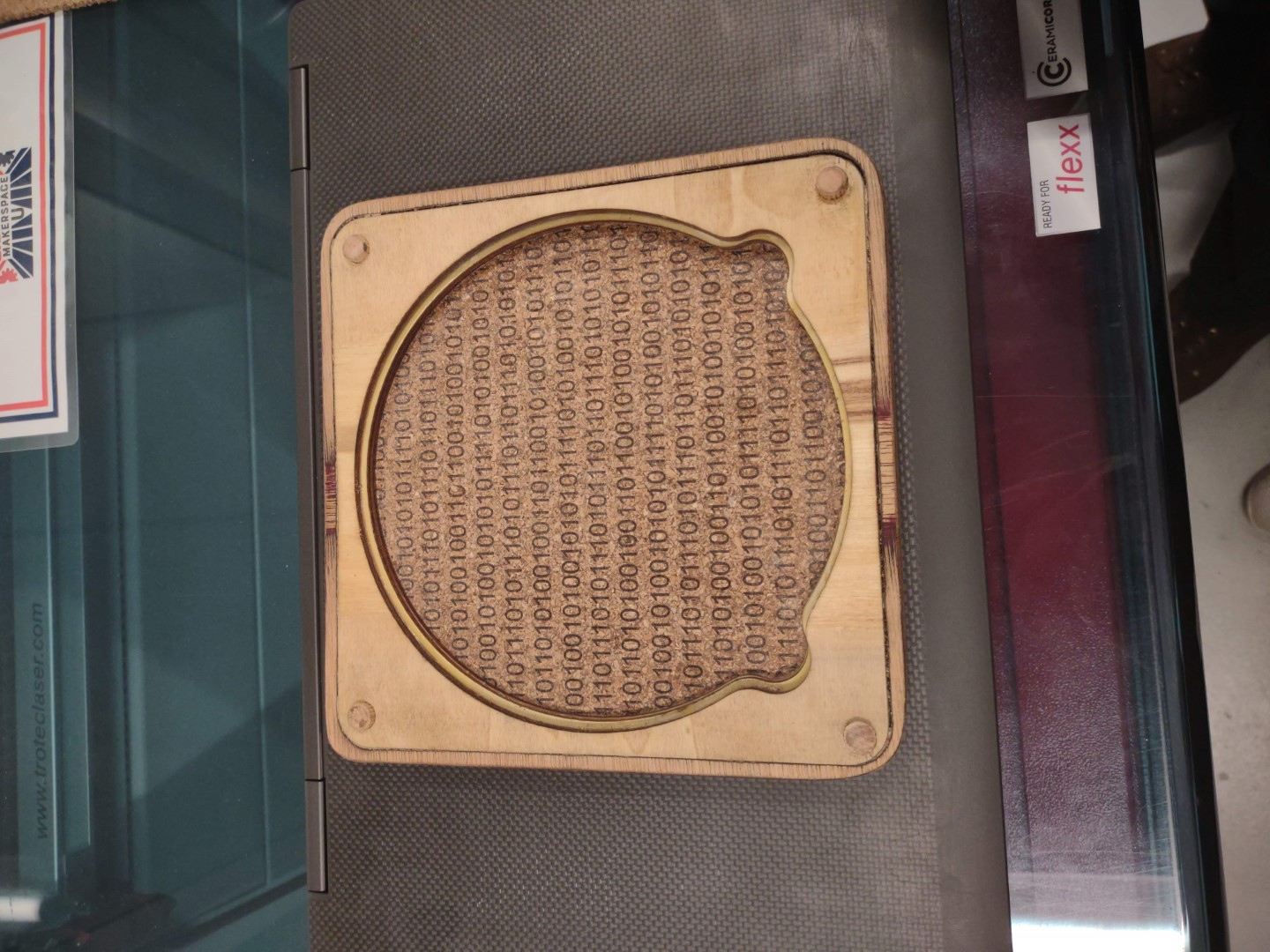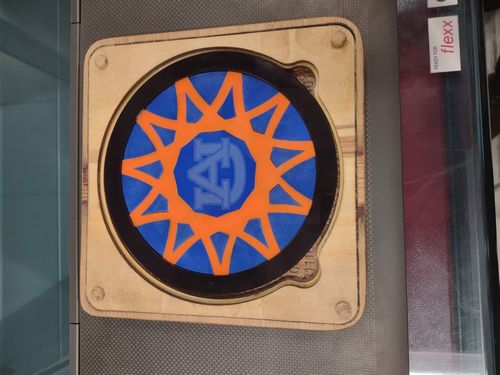 Using the laser cutters to get those precise cuts and engraving. And making the wood cover in the wood shop. The orange and blue acrylic was cut out on the lasers and the cork back was engraved also.Tags: Basic Safety TrainingPrototype ShopLaser Cutter TrainingWood Shop TrainingPrototype ShopWood ShopDewalt Miter SawSawstop Table SawTrotec Laser Cutterbwt0012prototype