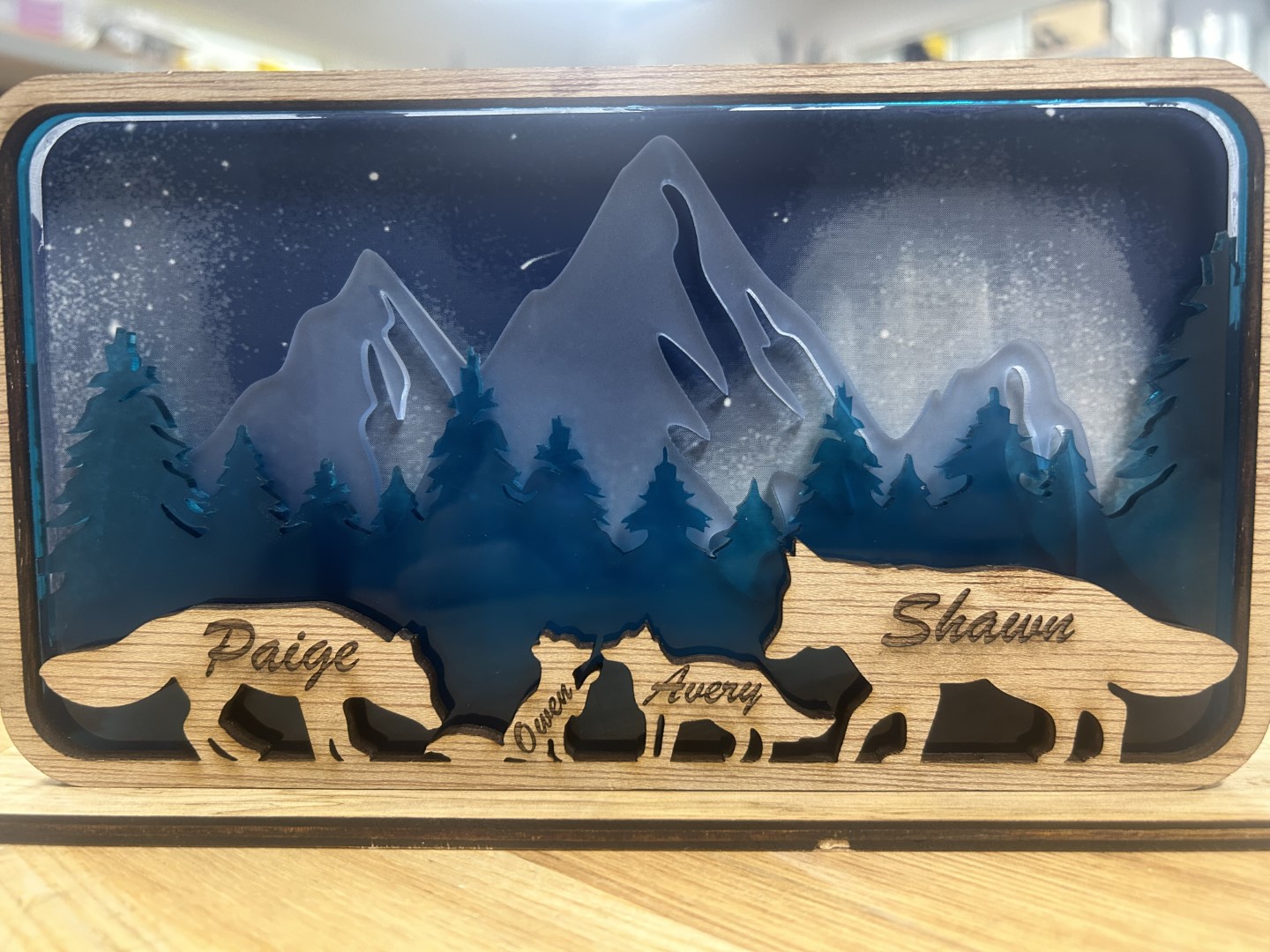 A simple desktop wolf stand that is made using the Laser Cutters as well as materials provided by the Prototype Shop.